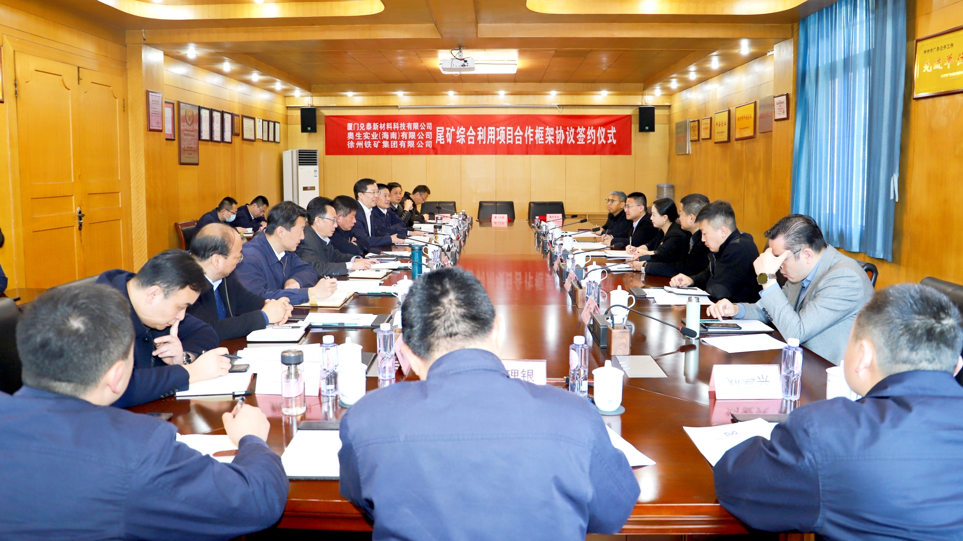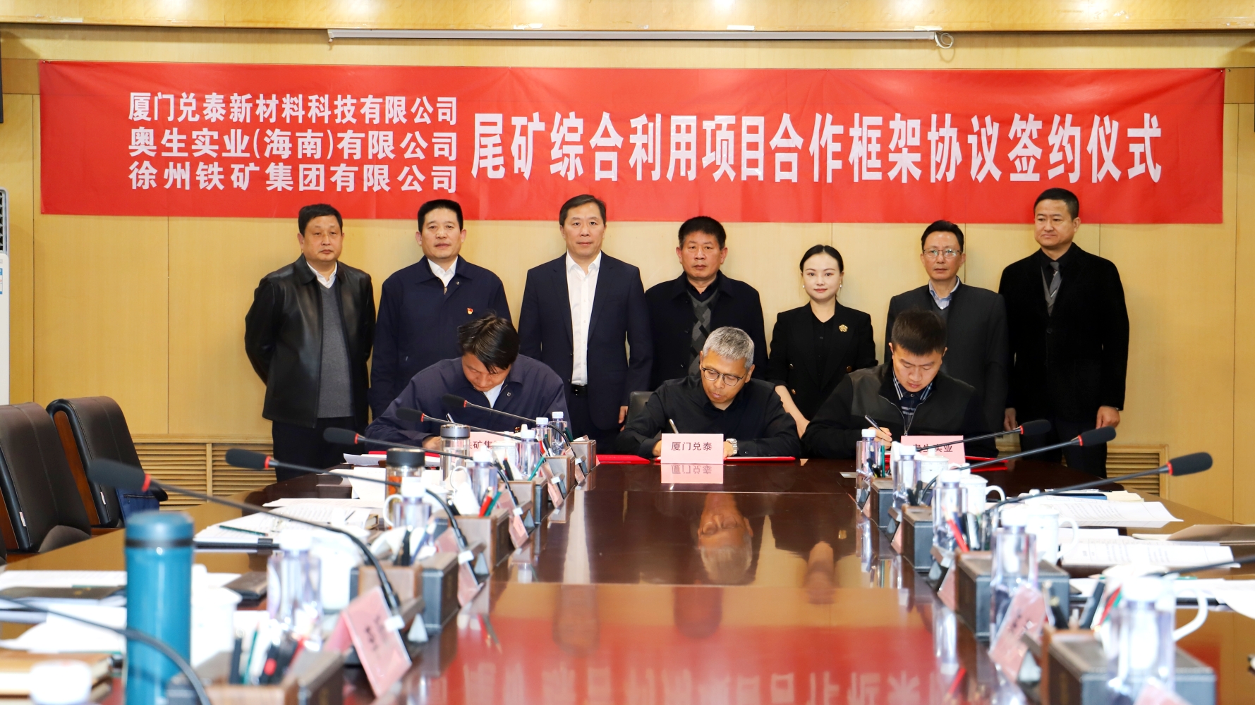 3月27日,廈門兌泰新材料有限公司、奧生實業(yè)(海南)有限公司與鐵礦集團有限公司共同舉辦尾礦綜合利用項目合作框架協(xié)議簽約儀式。廈門兌泰新材料有限公司董事長李文娟,奧生實業(yè)(海南)有限公司董事長陳濤,徐州市國資委四級調研員尹振清,銅山經濟開發(fā)區(qū)副主任朱勝軍,國源集團領導孟光、李昕、劉廣步出席會議,三方其他相關人員參加會議。會議由國源集團黨委委員、副總經理,鐵礦集團黨委書記、董事長肖益芳主持。